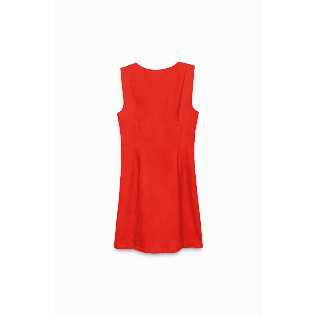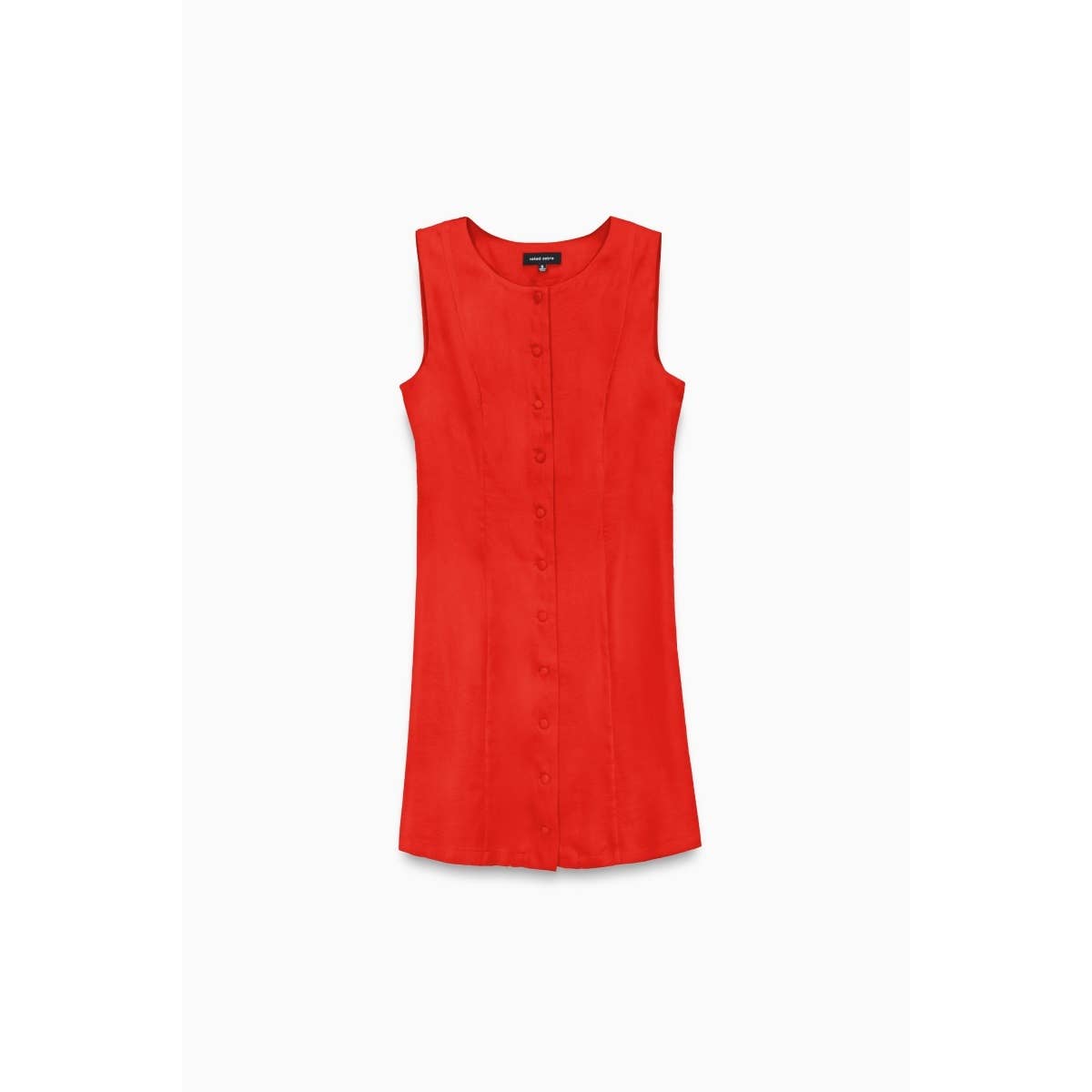 Effortlessly bold and classically refined — the Sleeveless Button-Front Mini Shift Dress in Flame Scarlet is a warm-weather essential that never goes out of style.