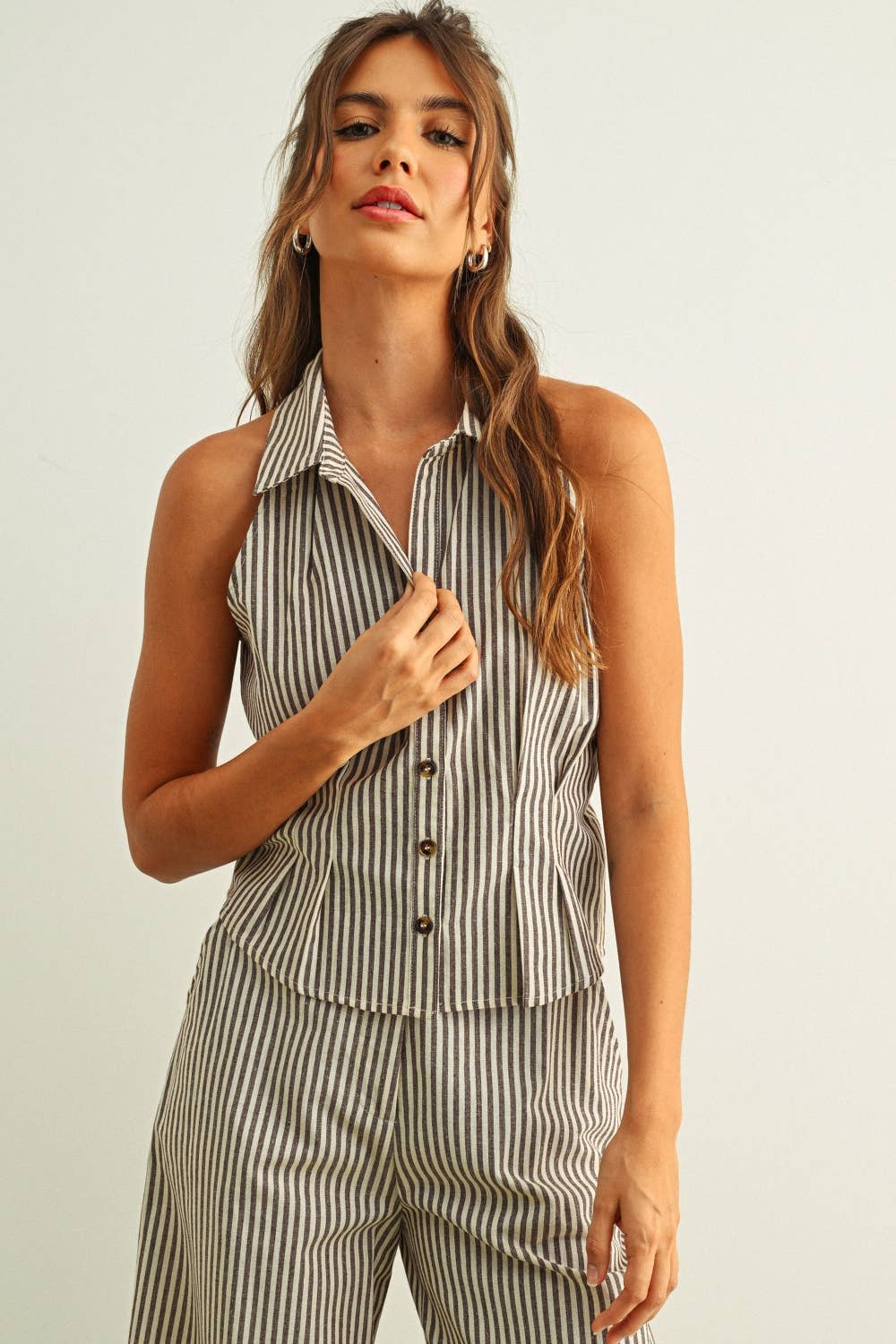 This Striped Pattern Collared Blouse is the epitome of classic, versatile style. The striped pattern adds timeless visual interest and dimension that's both eye-catching and easy to style, while the polished collared neckline brings sophisticated, refined appeal that elevates any outfit. The versatile design makes this blouse incredibly easy to style for multiple occasions, from professional office settings to casual weekend outings. Whether you're pairing it with tailored trousers and heels for a polished work look, styling it with jeans and flats for casual elegance, or tucking it into a midi skirt for sophisticated events, this blouse delivers effortless versatility. The collared neckline adds a touch of formality that makes it appropriate for professional settings while remaining approachable and wearable for everyday style. The comfortable fit makes it perfect for all-day wear, whether you're at the office, running errands, or enjoying social activities. The striped pattern works beautifully with solid-colored bottoms and adds personality without overwhelming your look. Style it with dress pants for professional elegance, pair it with your favorite denim for weekend wear, or wear it with a statement skirt for special occasions. Tuck it in to show off your waistline and create a streamlined silhouette, or wear it untucked for a more relaxed feel. Add delicate jewelry for understated sophistication, or accessorize with bold pieces to make a statement. Layer it under blazers for extra polish or wear it solo to let the striped pattern shine. It's the kind of classic blouse that becomes a wardrobe staple, working seamlessly across seasons and occasions for effortlessly chic, refined style.